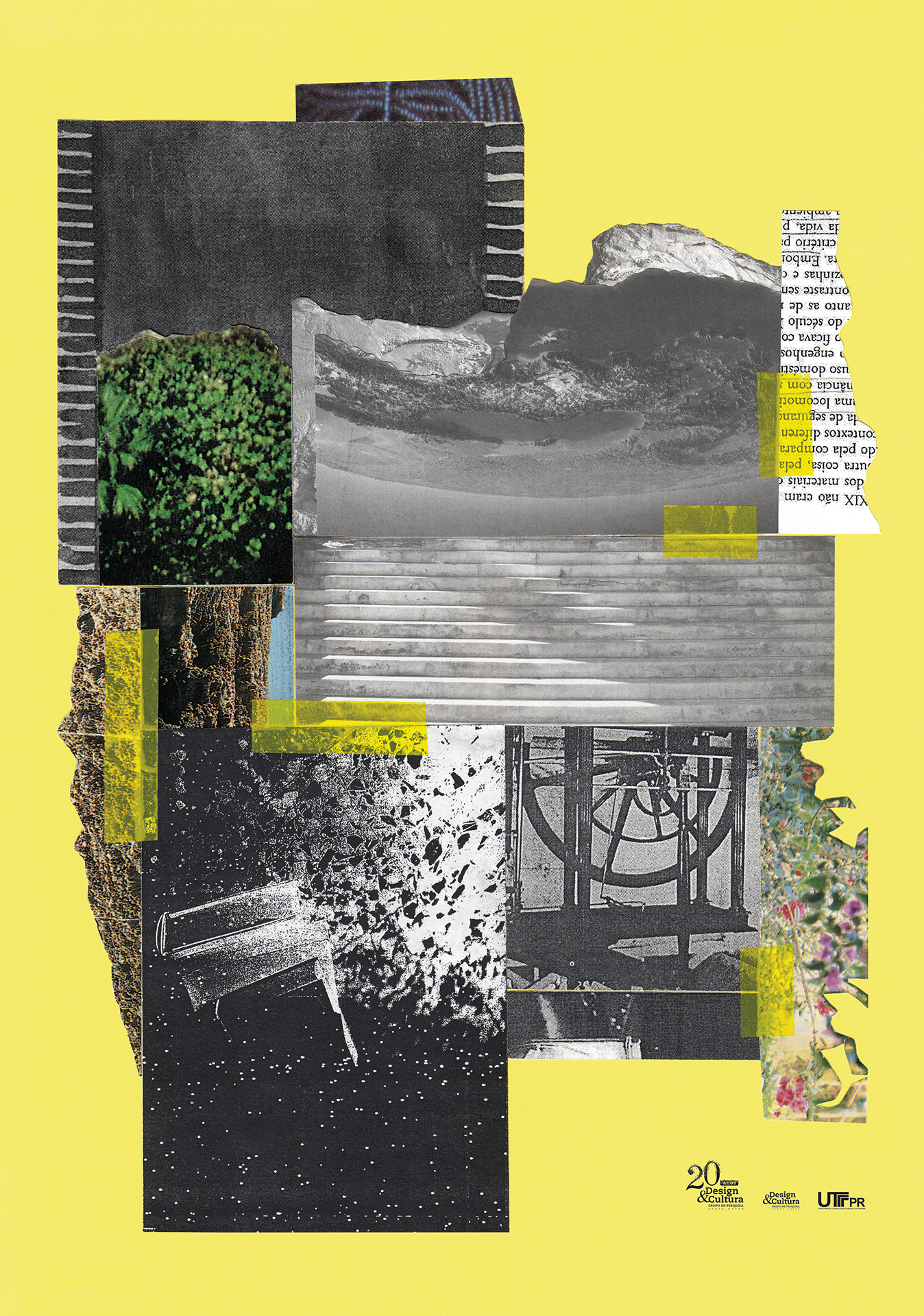 Cartaz com colagem desenvolvido para o evento de comemoração de 20 anos do Grupo de pesquisa de Design & Cultura (PPGTE/UTFPR) à convite do prof. Dr. Ronaldo Corrêa (UFPR).