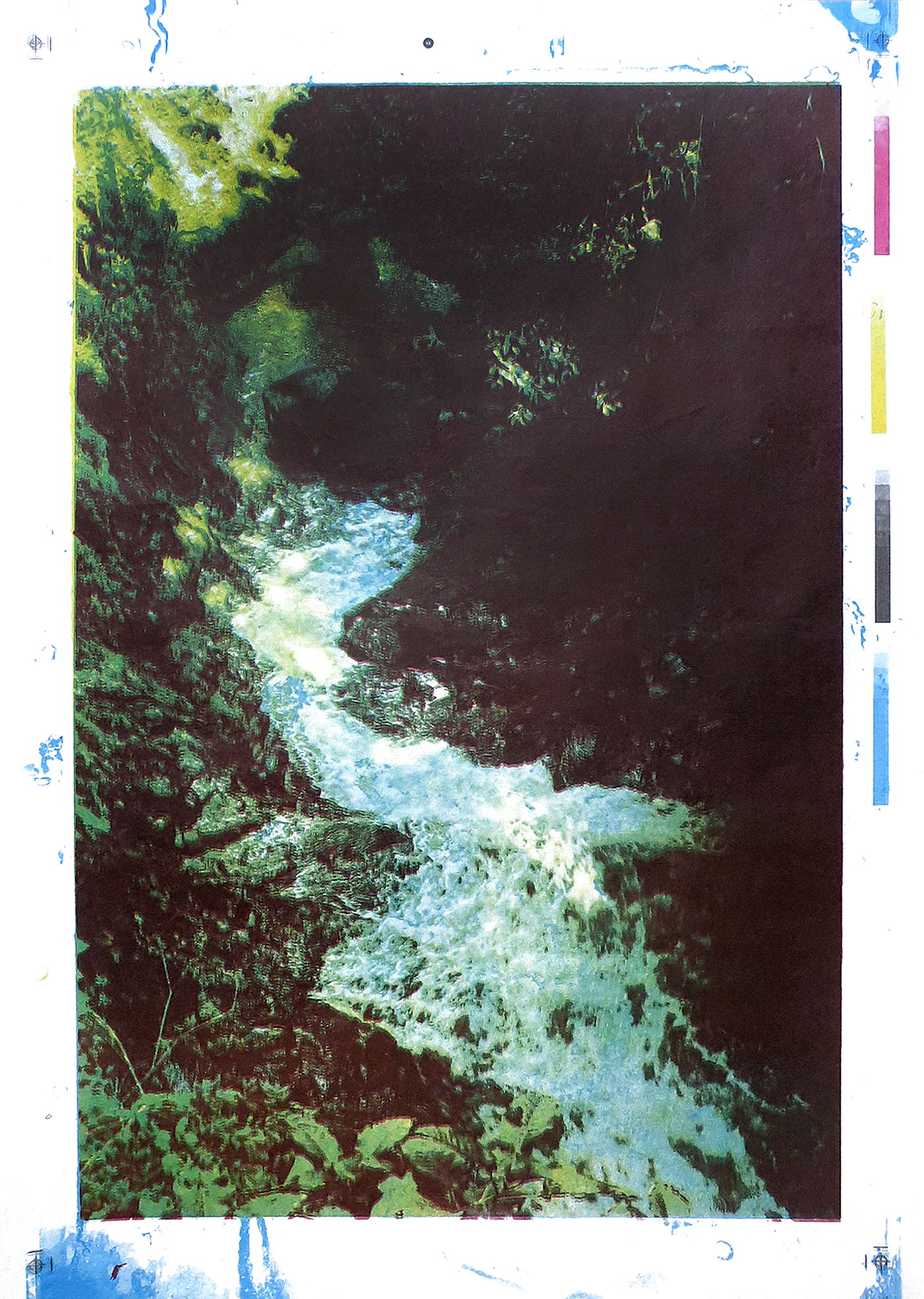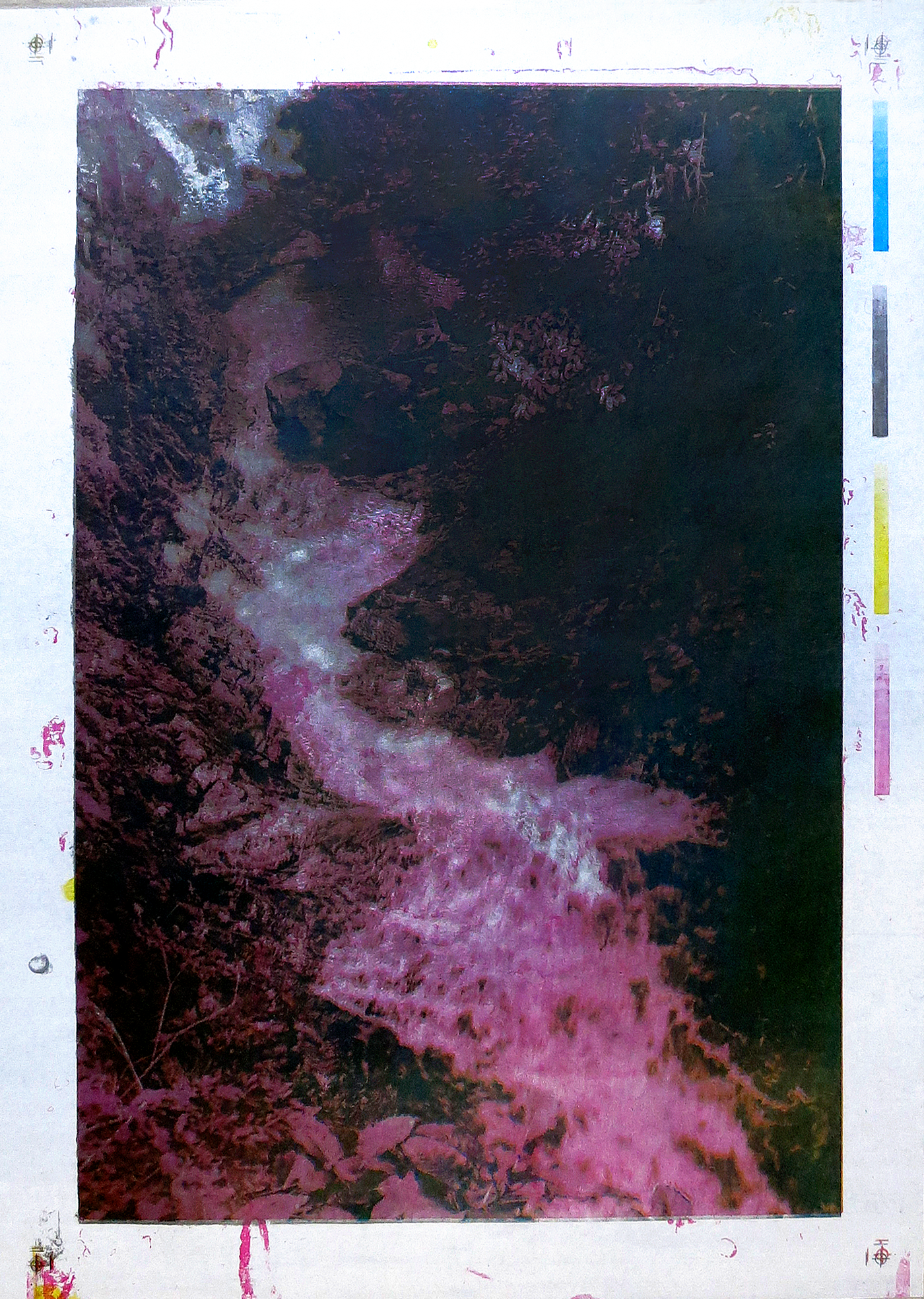 A artista Karina Rampazzo, por sua vez, se encontrou com as tintas e os rolos do prelo offset e viu ali um campo fértil para pulsões expressionistas. A mancha, a densidade das cores, o acaso controlado pelo gesto – tudo isso passou a integrar seu repertório de gravuras e desenhos. O resultado são obras que oscilam entre a figuração e a abstração, nas quais o corpo aparece como vestígio, como membrana exposta ao mundo. O contato direto com a matriz e a possibilidade de sobreposição de camadas abriram para Karina novos diálogos entre a gravura e o desenho, expandindo as fronteiras de sua pesquisa.