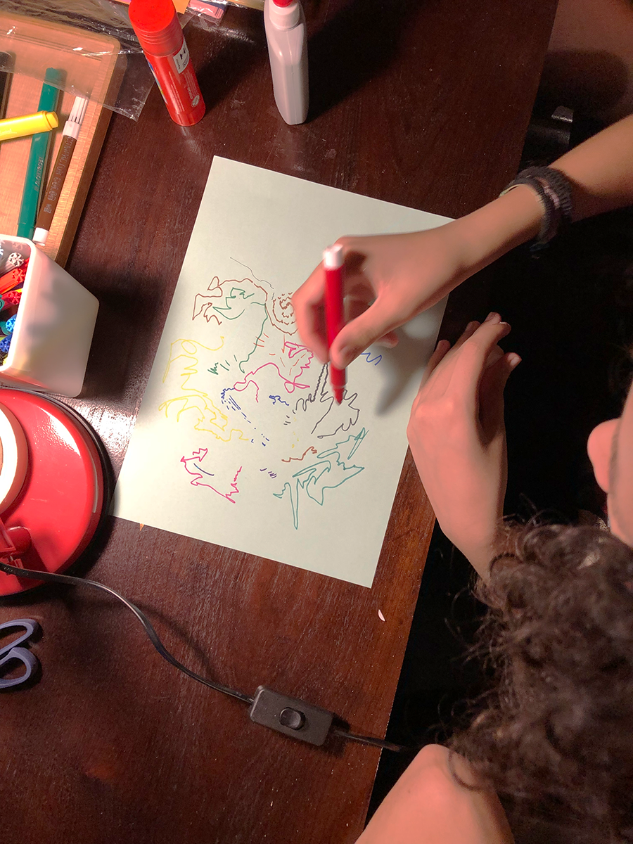 Durante a inauguração do espaço Casa Pomar em 2022, a oficina Lambes abstratos foi ofertada como parte do evento. Junto do irmão e também artista Lucas Rampazzo, os participantes foram desafiados a explorar o conceito de abstração através de estímulos sonoros, para em seguida produzirem uma série de layouts utilizando diferentes materiais de desenho, pintura e colagem. O resultado de toda a oficina foi a colagem dos layouts como lambe-lambe nas paredes externas do próprio ateliê.