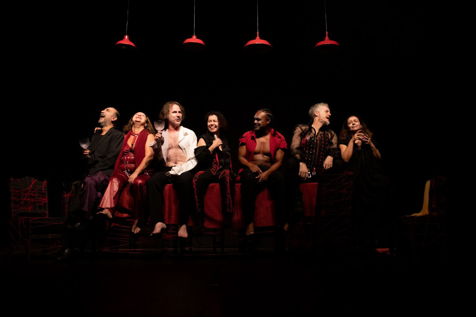 "No espetáculo “Olhos nos Olhos”, antigos amigos de um grupo teatral, que não se veem há muito tempo, são convidados a um encontro definitivo, onde uma notícia incontornável será revelada. Imersos em um tempo de exceção, reúnem-se em um velho teatro. Tentam romper o constrangimento do reencontro, entre taças de vinho e memórias. Como recomeçar depois da grande tragédia pessoal e coletiva? Como encontrar algum sentido heroico na nossa vida cotidiana e ante a fragilidade humana? Tirésias, vidente que atravessa muitas narrativas gregas, mudando a rota de mitos – é quem aponta os caminhos nesta jornada diante da cegueira do mundo".